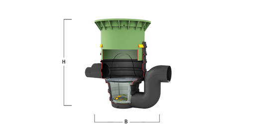 Filtro interno Optimax Área de recolha max 350m2 Caudal max 5,5L/S Rede de Filtragem 0,35mm Altura 320mm Ligação DN 110